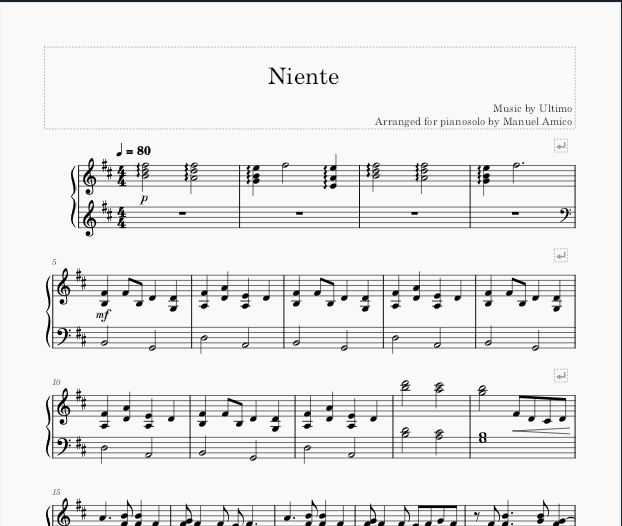 Spartito della mia cover di Ultimo - Niente - video sul mio canale youtube @MANUEL AMICO https://www.youtube.com/c/ManuelAmico